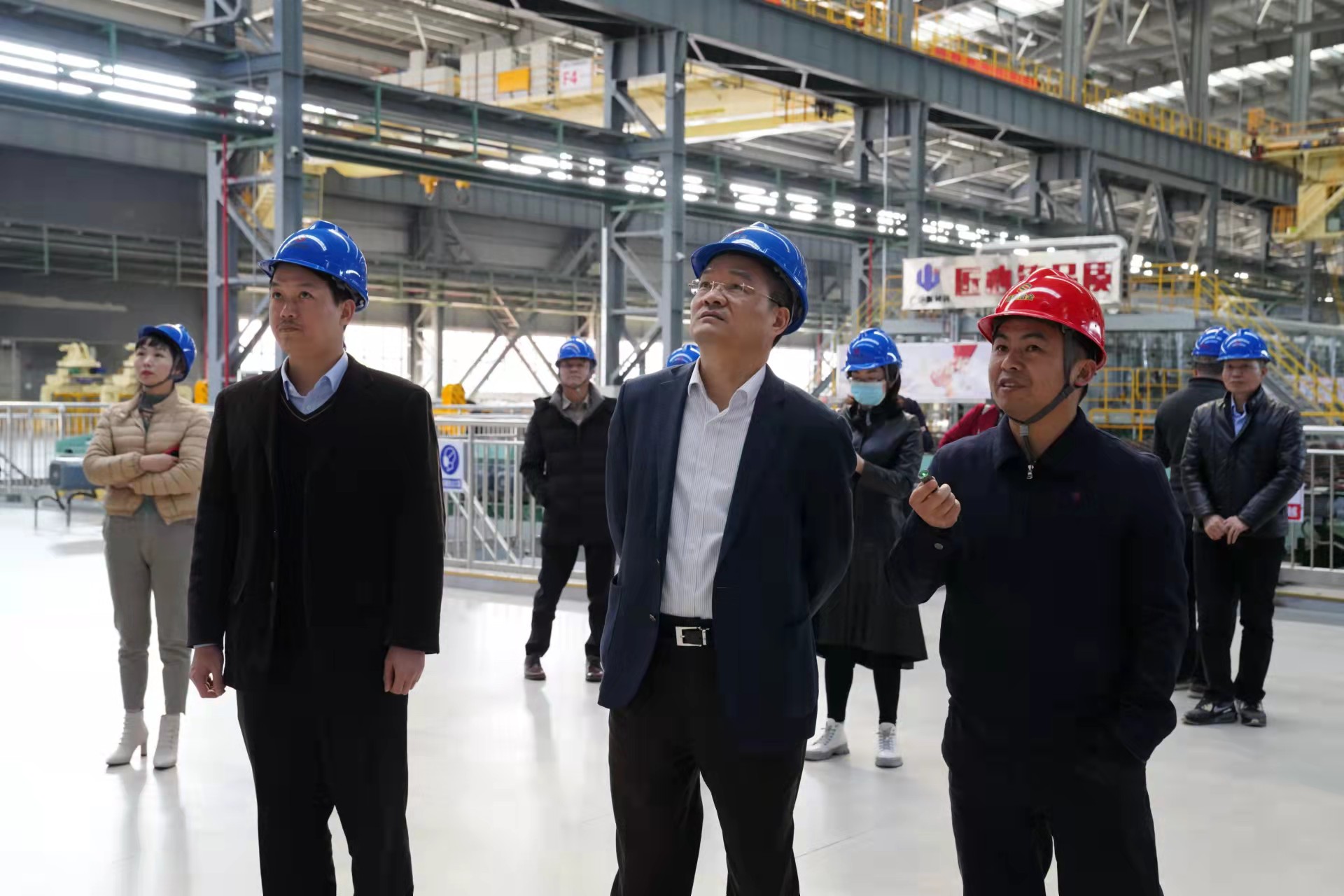 2022年2月23日,厦门信达股份有限公司书记、董事长李植煌率队访问我司。经营总裁林能镜代表公司热情迎接并陪同参观了生产厂区。在展厅的沙盘上,林总裁详细介绍了云开体育(中国)体育官方网站-登录入口冶金的装备情况以及未来的发展计划,随后参观了1780mm热轧卷板生产流程以及先进的高强耐磨钢生产线。