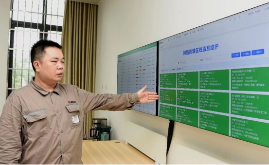 公司设备运维部信息科网络工程师表示,在相距不到30米的大堂另一侧,就是公司的云数据中心机房,那里相当于是环保监控一体化平台的“大脑”,通过千兆光纤与大屏相连。据悉,在公司8000多亩的厂区内,共建了中国电信的18个5G基站,实现5G信号全覆盖。分布在厂区内的586个TSP监测点采集到的实时数据,通过电信千兆光网高速传回到云数据中心机房。