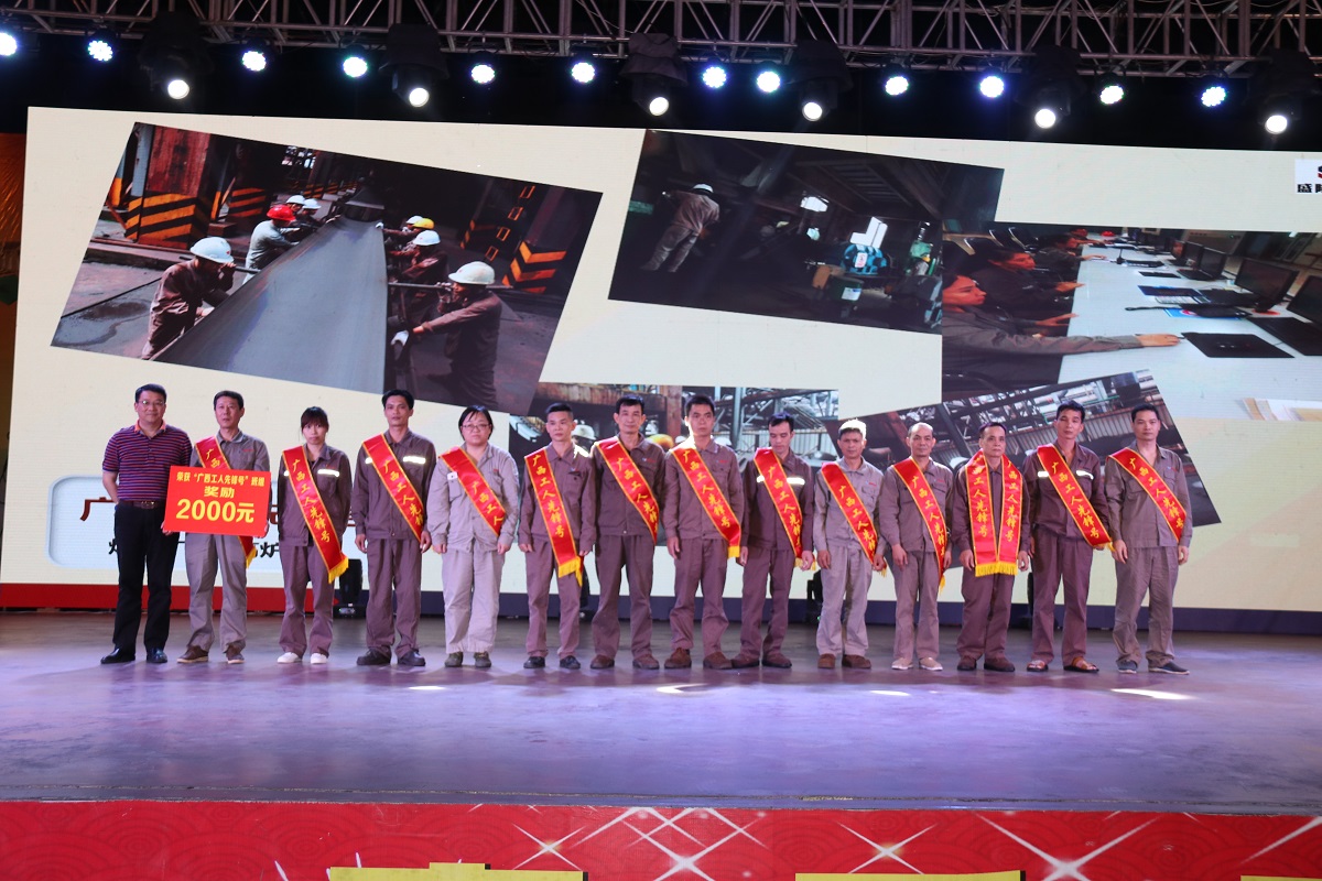 表彰荣获“广西工人先锋号”称号的炼铁厂6号高炉上料工段