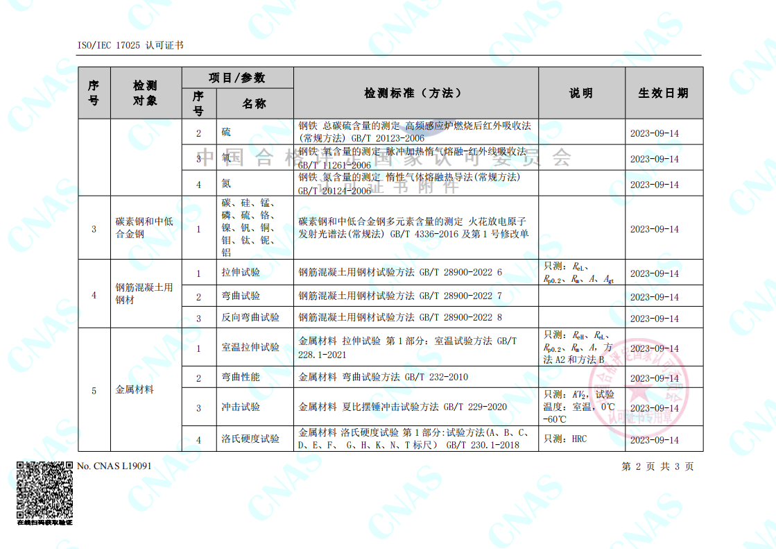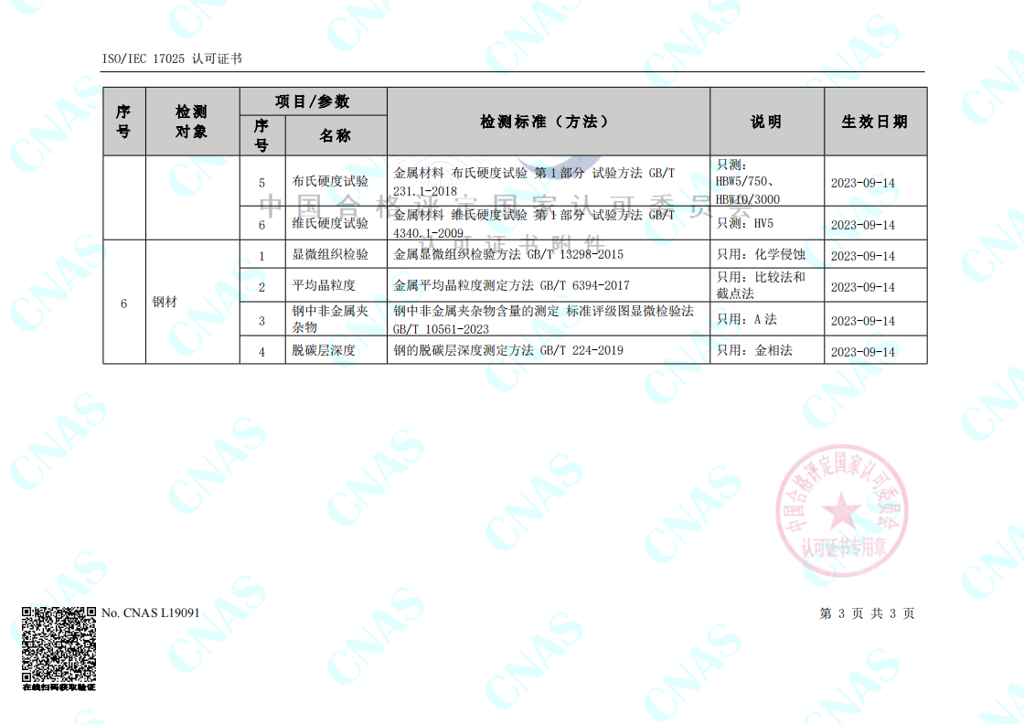 实验室认可证书